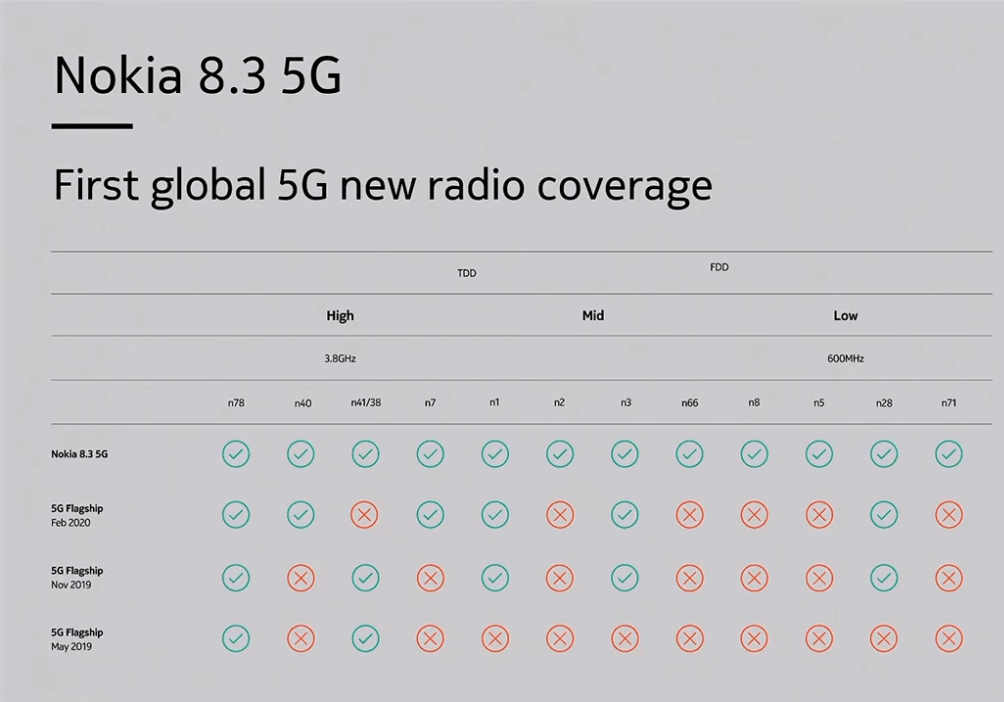 However, the Nokia 8.3 5G will enable 5G roaming thanks to its broad support for frequencies.